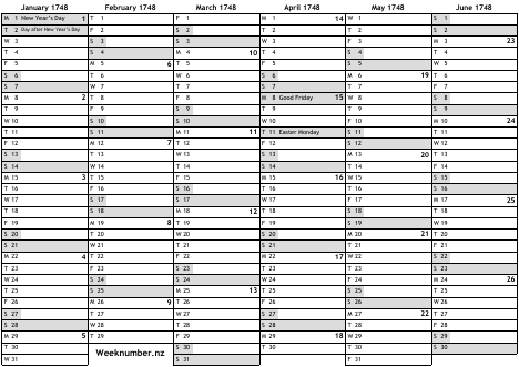 1748 calendar