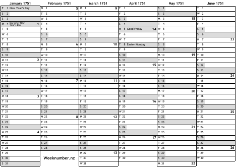 1751 calendar