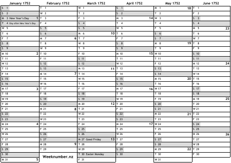 New Zealand holidays 1752