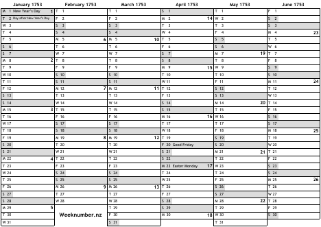 1753 calendar