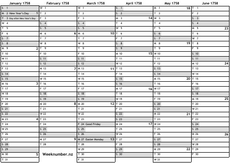 1758 calendar