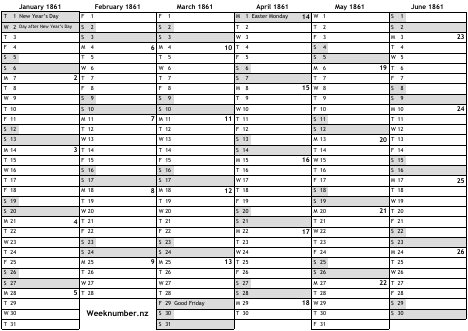 1861 calendar
