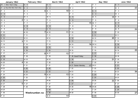 1862 calendar