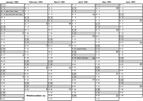 1881 calendar