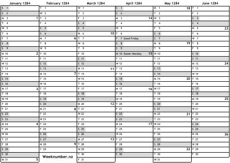 1284 calendar