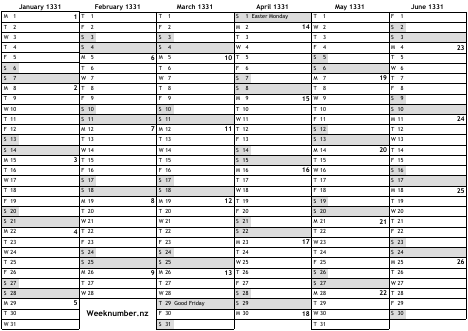 1331 calendar