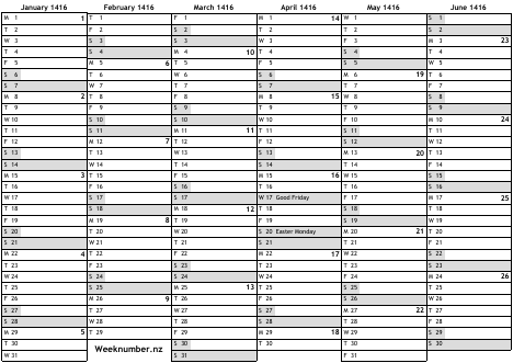 Calendar with week numbers and holidays