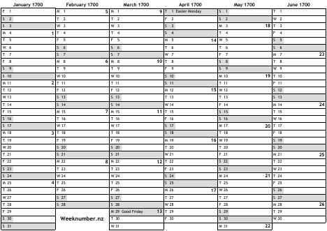 1700 calendar