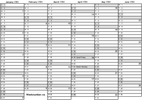 1701 calendar