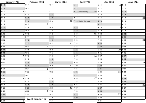 1724 calendar