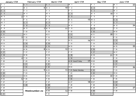 1739 calendar