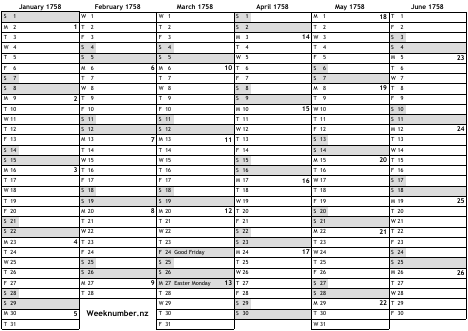 1758 calendar