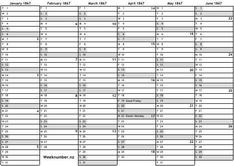 1867 calendar