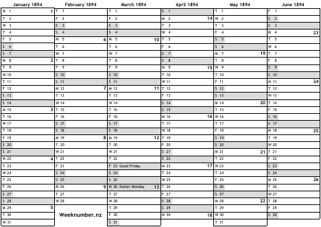 1894 calendar