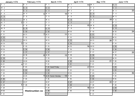 1174 calendar