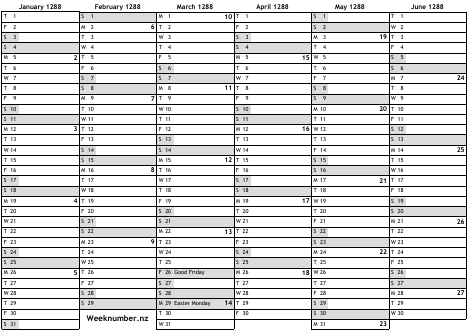 1288 calendar
