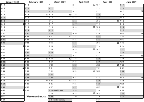 1309 calendar