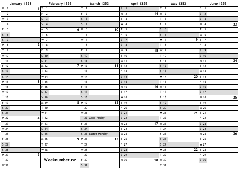 1353 calendar