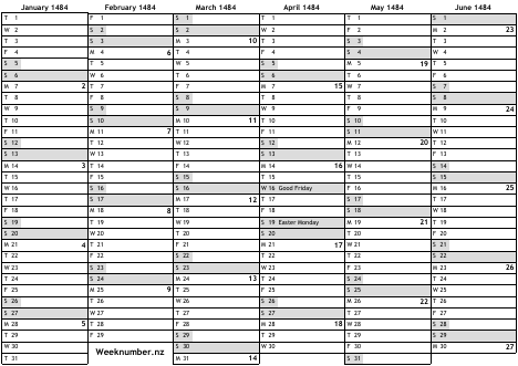 1484 calendar