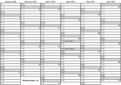 1625 calendar