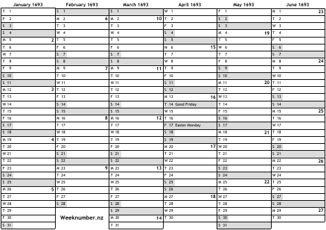 1693 calendar