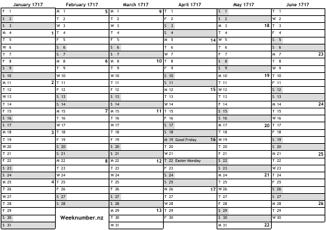 1717 calendar