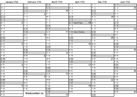 1732 calendar