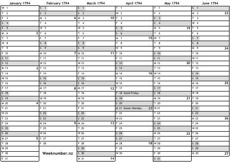 1794 calendar