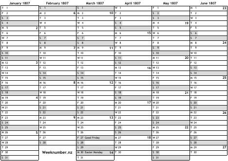 1807 calendar