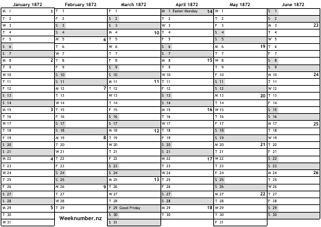 1872 calendar