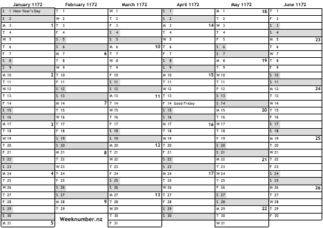 1172 calendar