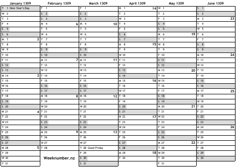 1309 calendar