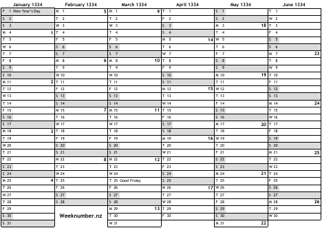 1334 calendar