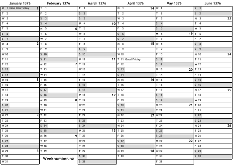 1376 calendar