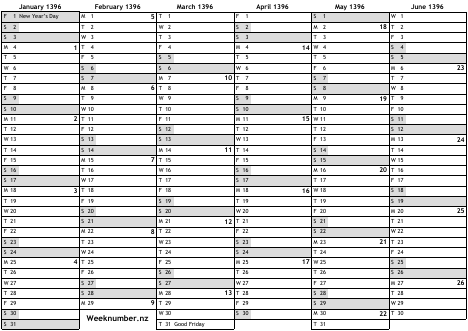 1396 calendar