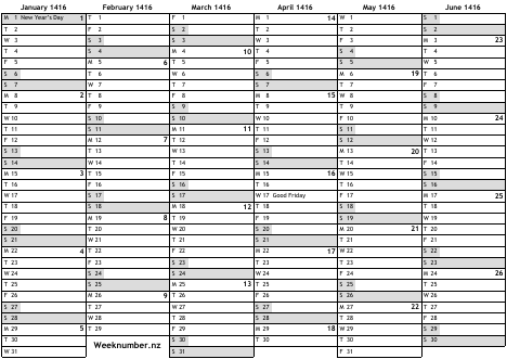 1416 calendar