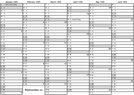 1425 calendar