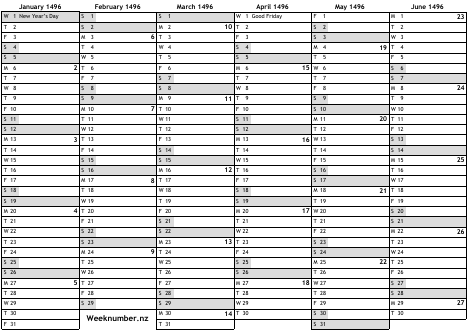 1496 calendar