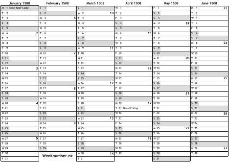 1508 calendar