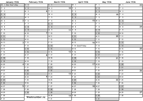 1536 calendar