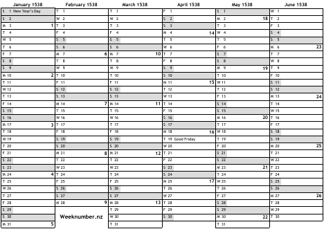 1538 calendar