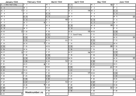 1544 calendar