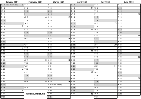 1551 calendar