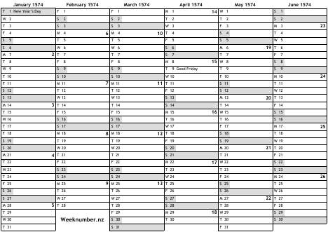 1574 calendar
