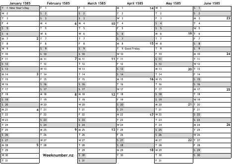 1585 calendar
