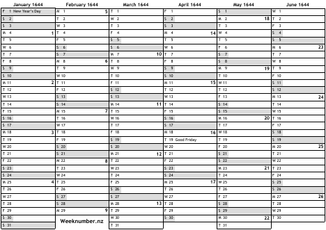 1644 calendar