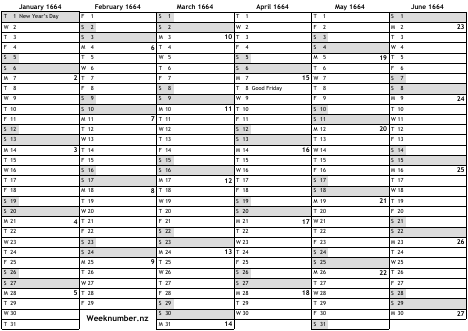 1664 calendar