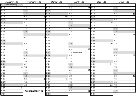 1685 calendar