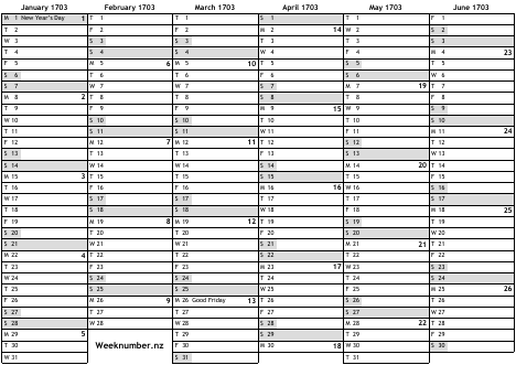 1703 calendar