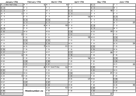 1706 calendar
